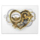 Cardíaco mecânico, volumétrico e steampunk com manômetros de pressão, de aço e de ouro sobre fundo branco. Estilo Steampunk.