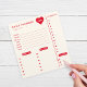 Notebook vermelho e creme, bonito, com texto vermelho em negrito e muitos corações vermelhos minúsculos! Possui uma lista de compro de corte para pop no bolso para mais tarde. Acerte o que comer, fazer, assistir e ler, quem ver e em que trabalhar. Adicione seu nome (dentro do coração vermelho!) para personalizar.