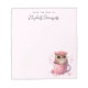 Um bloco de notas com uma imagem adorável de uma coruja sentada numa caneca de café. Corações pairando e um rosa solteiro colocado no fundo da xícara.