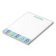 Crianças Personalizadas Chevron Moderno Trendy Simple Note Pad. Personalize este clichê de papel listrado clássico e divertido, com o nome do seu filho no topo, com uma letra verde brilhante. As faixas modernas e verdes e azuis do diafragma alinham a borda inferior dessas placas. Masculina e cores simples são excelente para garotos e adolescentes.
