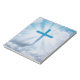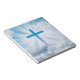Uma bela imagem de uma cruz azul que atravessa as nuvens é apresentada neste bloco de notas. O bloco de notas é de 5,5" X 6" com este design impresso em todas as páginas, perfeito para o trabalho, casa ou escola! Use-se ou dê como presente para Páscoa, Confirmações e muito mais!