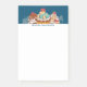Notas pegajosas com uma fileira de cupcakes deliciosos com espirais e cerejas e glacé delicioso. Ilustrado em um estilo retrô clássico. As cores incluem verde retrô, vermelho, azul e creme.