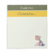 Este adorável bloco de notas de 5,5" x 6" é perfeito para as crianças que adoram fazer a sua marca! Com 40 páginas, ele apresenta uma super fofa design do leopardo ao lado da frase "A Note From", pronta para ser personalizada com o nome do seu filho. Quer estejam juntando lembretes, rabiscando ou escrevendo notas doces, este bloco de notas personalizado adiciona um toque lúdico a cada página. Excelente para escola, casa ou doação! Personalize-o para tornar cada mensagem única. Perfeitamente dimensionado para mãos pequenas e grandes imaginações! Verde / amarelo