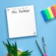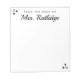 Bloco de notas branco impresso com pequenas estrelas pretas, perfeito para professores. Adicione seu nome em um bonito script de caligrafia.