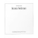 A partir da mesa dos formulários, a linha superior do texto de exibição neste bloco de notas. A segunda linha de texto é maior para o nome do destinatário. Há um pequeno texto preto na parte inferior para informações de contato, como um endereço de e-mail e número de telefone.