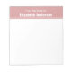 Este da mesa do bloco de notas tem texto de exibição branco no topo. A parte superior é rosa empoeirado. Há duas linhas de texto de exibição branco na área rosa. A linha de cima diz "Da Mesa De". A segunda linha é para o nome do destinatário.