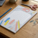 Mantenha-se organizado e inspirado neste bloco de notas divertido e funcional, com um design de material escolar vibrante. Com lápis, tesouras, clipes de papel e marcadores coloridos de páginas ilustrados em torno de papel alinhado, é perfeito para professores, estudantes ou qualquer pessoa que ame artigos de papelaria. Excelente para anotar notas, listas de fazeres ou adicionar um toque divertido à sua mesa ou sala de aula!
