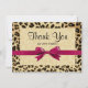 Cartão de Agradecimento com Estampa de Leopardo e Laço Rosa Fuchsia Vibrante é excelente para Chás de Panela ou ocasiões para a mulher feminina e delicada com um toque de moda e estilo moderno.