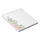 Um bloco de notas bonito com uma borda floral cor-de-rosa, verde e prateada pastel no lado esquerdo.