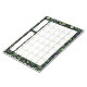 Este calendário de bloco de anotações perpétuo apresenta uma grade de calendário preto e branco sobre a folhagem verde. A cor de fundo pode ser personalizada. As fontes e o texto também podem ser personalizados, assim como as caixas que contêm o Mês e as Notas, e as pequenas caixas verdes para os números do dia. Há páginas suficientes para durar 40 meses.