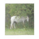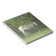 Este incrível bloco de anotações apresenta uma bela fotografia de um lindo cavalo branco parado debaixo de uma árvore parecendo um pouco tímido.
