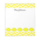 Bloco de notas de limão amarelo para o professor | Nome personalizado. Ensinando presentes. Padrão de vetor. Zig Zag design. Impressão de faixa de ziguezague com frutas. Papelaria de escrevendo personalizado para jardim de infância/escola primária. Estudantes e material de escritório. Tema de comida.