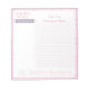 Receba o bloco de notas em bolinhas cor-de-rosa doce com colunas separadas para ingredientes e descrições. Também disponível em vários padrões e cores diferentes.