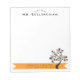 Se você tem um afeto pelo conhecimento ou conhece alguém que professores, este é um bloco de notas personalizado de excelente. O design apresenta uma árvore floral colorida moderna com insetos florais cor de laranja no canto inferior direito, no final de uma faixa laranja correspondente. Personalize o texto do modelo, remova o texto ou clique em personalizar para selecionar um estilo, tamanho e cor de tipo desejados.