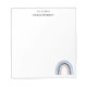 Um bloco de notas com um arco-íris giro e caprichoso. Aquarelas azuis e de pêssego.