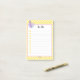 Padrão de bolinhas amarela com uma nota de diamante rosa-púrpura. Escreva todos os seus "To-Do" do dia.