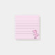 Desenho t-rex rosa-claro. Notas adesivas personalizadas com linhas e fundo rosa. Versão quadrada. Ideia de presente para crianças.