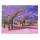 Dois dinausores argentinossauros numa paisagem selvagem pré-histórica e num céu colorido