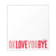 Bloco De Notas Diversão OK Te Amo Tchau Vermelho e Namorada rosa