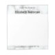 Este da mesa do bloco de notas tem texto preto na parte superior e inferior. Um design de mármore branco sujo aparece atrás do texto. A linha de cima diz "Da Mesa De". A segunda linha é para o nome do destinatário. Na parte inferior, há mais texto de exibição em preto para informações de contato, como endereço de e-mail e número de telefone.