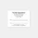 The appointment reminder notes say "Your Next Appointment" in a bold font at the top. Lines of black display text are available for the name of the medical practice, street address, phone number, and website. There are also lines for the date and time of the appointment. The bottom has display text you can edit to show a custom message. All text can be edited or deleted.