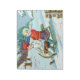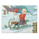 Dormir na hora de Natal! Ilustração de duas crianças bonitinhas se divertindo brincando na neve com um trenó.