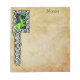 Um dragão verde com um nó celta trabalha na fronteira de um pergaminho antigo. O texto pode ser personalizado.