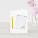 Este design é um bloco de notas e um lápis. É um bloco de anotações alinhado com o canto da página superior dobrado. Não no bloco de notas há um lápis amarelo. Está tudo pronto para começar a escrevendo. Este bloco de notas e design de lápis parecem excelentes nestas placas