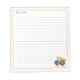 Personalize este design de caminhão de lixo, adicionando um nome, apelido ou slogan. O trabalho de arte neste design apresenta um caminhão de brinquedo bonito em amarelo, laranja e azul. Sob o caminhão estão as palavras Sob Construção. Rapazes de qualquer idade gostarão de notas de fazer, rabiscar ou desenhar neste bloco de notas. O design original tem linhas para tornar seu escrevendo limpo e arrumado, mas você pode excluir as linhas para fazer um painel de rabiscos personalizado. Invente vários como presentes para os rapazes na sua vida. E garotas gostam de caminhões também. [Em Construção de Caminhão Azul]