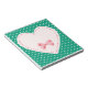 Um padrão de bolinhas verde esmeralda bonito com um adesivo em forma de coração colado a rosa e embelezado com um arco cor-de-rosa bonito.