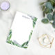 Greenery Nopad personalizado com seu nome na caligrafia azul-escuro. As folhas verdes enfeitam o posto em uma coroa como um quadro ao redor das páginas vazios.
