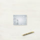 A temporada de caligrafia moderna de Joy Winter Trees Posta as notas - Em cores azuis-prateadas, um povoado de pinheiro-de-arte - parado em uma cena de neve feita no estilo de boque - Alegria escrita em caligrafia manual