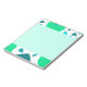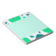 Este bloco de notas é delimitado por várias folhas verdes e uma parte central na turquesa clara.