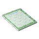 Bloco de notas de 5,5" x 6" com a imagem de um painel verde de colocação com muitas bolas de golfe a apontar para buracos e um espaço escrevendo branco transparente. Texto opcional. Veja a coleção inteira de Bloco de Notas do Dia do Pai nos TOUCHES ESPECIAIS | Seção Favoritos para festas. Este produto não está associado nem afiliado ao titular original dos direitos de autor.
