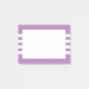 Estas notas modernas de Posto-Ti apresentam um design simples com 4 faixas brancas horizontais e um retângulo branco sobre um fundo roxo personalizável.