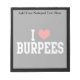 Encoste suas coisas na academia ou ao redor da cidade neste legal e engraçado equipamento de burpees com fundo preto e um coração vermelho. Excelente para um treinador pessoal, um entusiasta de exercícios e malhações ou um professor da classe de exercícios que trabalha no duro que adora fazer os clientes suarem e fazerem essas simulações divertidas de exercícios de combinação de tomadas e tomadas de pulso. Todos os Designs Copyright © 2012 www.CuteComfy.com