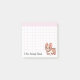 Nota pegajosa e bonita com um doce desenho animado, um buldogue francês marrom no canto inferior direito da nota. À esquerda do cão estão as palavras "Estou fazendo Excelente" em caracteres pretos, este é um modelo, então pode ser mudado para qualquer texto. O fundo é branco com um padrão de grade rosa.