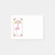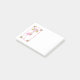 Notas adesivas de natal tropicais caprichosas. Um flamingo rosa elegante com uma perna levantada. Usando um chapéu de Papai Noel rosa e um pouco de azevinho sazonal. Azevinho com bagas também decora os cantos. Uma bouquet floral acima da cabeça dela com bastões de doce cruzados.