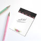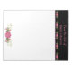 Bonito bloco de anotações feito em branco, com um cabeçalho preto que tem uma borda de flores rosa e uma flor rosa, decorando o fundo, do bloco. Personalize o texto cor-de-rosa no topo da plataforma, para você mesmo ou como uma boa ideia de presente para ela.