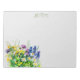 Flores coloridas de verão selvagens, pintadas com aquarelas, azuis, amarelas, cor-de-rosa e roxas. Belo bloco de notas.