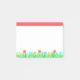 Flores elegantes e notas adesivas de plantas de grama verde.