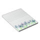 Um bloco de notas bonito com uma fileira de flores de aquarela pintadas em tons de cinza, massa e roxo com caules e folhas verdes primavera. Pasta floral alegre para listas, lembretes ou um presente bonito!