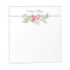 Este belo bloco de notas apresenta flores de aquarela em tons de verde, púrpura e pinks, e sua personalização. Use o formulário modelo para adicionar seu texto.