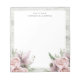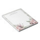 Flores Rosa Espelhadas e Notepad Pinecones, Rustic Farmhouse, com " personalizável da mesa de " e modelos de nome. A borda apresenta textura branca de madeira e flores cor-de-água rosa, pinheiro e pinecones.