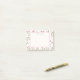 Notas pegajosas com seu nome personalizado dentro um quadro branco de casca de ovo com borda rosa. O pano de fundo é um padrão de flores silvestres cor-de-rosa desenhadas à mão, com caules verdes longos e folhas num pano de fundo branco de casca-de-ovo. Círculos cor-de-rosa e galhos também decoram o design. Design floral branco e bonito.