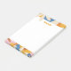 Colorful intersecting shapes create a retro floral border for this notepad.