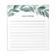 O bloco de notas botânico apresenta uma borda superior de folhagem de aquarela verde e folhas de eucalipto. Personalize com seu nome ou escolha de personalização em caracteres manuscritos de script. Pautado.