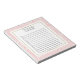 Bloco de notas personalizado "Para Fazer" com folhas brancas em cor-de-rosa macio e fundo branco com cestaria dourado. Texto, fonte, tamanho da fonte, cor e posicionamento são completamente personalizáveis.