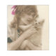 Linda jovem com seu pequeno cachorro branco em um antigo cartão postal francês de fotos reais para a Rua. Dia de Catherine. Eu tenho o costume de restaurar a imagem.