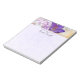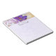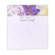 Um bloco de anotações com uma bela fotografia de um vidro de dentro de vidro de croco roxo escuro. Uma flor roxa leve está presente no fundo.